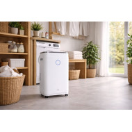Ce déshumidificateur de 410 Watts de la gamme DEOLO de ARGO est doté d'un réservoir d'eau de 2,5 litres. C'est le déshumidificateur idéal pour les grandes pièces, il est approprié pour une pièce allant jusqu' à 48 m² . Le déshumidificateur est très silencieux, son faible niveau sonore de 41Db vous permet de profiter d' une pièce tranquille et agréable. Efficace, compact et mobile, le Déshumidificateur DEOLO 17 est adapté pour un usage domestique et professionnel.. L'appareil est capable de traiter 126 m³/h. Grâce à sa hauteur de 50,3 cm, de son poids de 13,3 Kg, et de ses 4 roulettes multidirectionnelles, vous pouvez le transporter facilement d'une pièce à l'autre. Il offre une maniabilité exceptionnelle. Sa couleur blanche sobre et son design moderne s'intègrent parfaitement à l'intégralité de votre pièce, vous n'avez pas besoin de le cacher.
