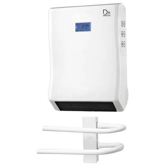 Le soufflant sèche-serviettes de la marque DX DREXON est un sèche-serviettes dont le corps de chauffe est une résistance avec une puissance de 2000 Watts. Il est équipé d’un thermostat électronique et de 2 allures de chauffes (1000 et 2000W); il a une affichage LED en façade et avec ces é barres porte-serviettes amovibles, vos serviettes resterons toujours chaude tout en chauffant votre salle de bain. Grace à son affichage digital, la programmation se fait intuitivement. Pour sa protection en cas de surchauffe il est constitué d'une sécyrité anti-surchauffe. Il est catégorisé en classe II et suit la norme Française. Avec une garantie de 2 ans.